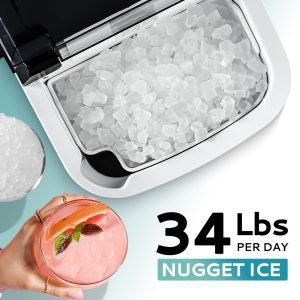 ดับกระหายได้อย่างรวดเร็วด้วยเครื่องทำน้ำแข็งเกล็ด EUHOMY ที่มีประสิทธิภาพ! คุณสามารถเพลิดเพลินกับน้ำแข็งซอนิกสดใหม่และเครื่องดื่มเย็นภายใน 6 ถึง 8 นาที ด้วยถังน้ำขนาด 1.2 ควอร์ต เครื่องนี้สามารถผลิตน้ำแข็งได้สูงสุดถึง 34 ปอนด์ต่อวัน และมีตะกร้าถอดได้ขนาด 1.8 ปอนด์ น้ำแข็งเม็ดนุ่มกรุบกรอบที่เป็นเอกลักษณ์จะไม่ทำให้มือหรือปากของคุณเจ็บ และช่วยทำให้เครื่องดื่มเย็นเร็วในขณะที่ยังคงรสชาติไว้ มอบประสบการณ์การเคี้ยวที่สนุกสนาน เหมาะอย่างยิ่งสำหรับกาแฟเย็น สมูทตี้ และการเคี้ยวน้ำแข็งเป็นของว่าง